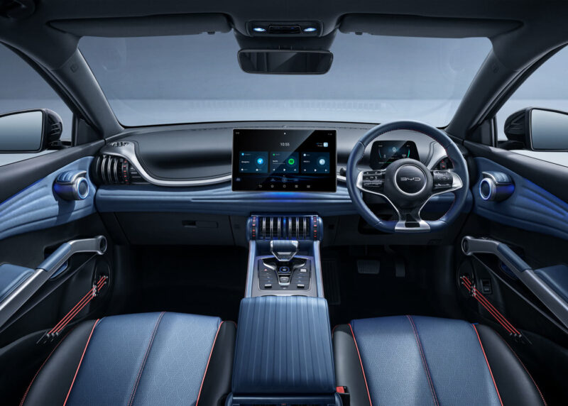 Dalam hal desain interior, BYD ATTO 3 memperkenalkan interior baru berwarna biru tua dan hitam untuk menciptakan suasana yang keren dan trendi, mencerminkan sikap muda. Garis-garis lembut berirama di sepanjang bagian depan dan samping mobil menggambarkan serat otot manusia secara humanis, memberikan sentuhan pribadi di tengah detail mekanis.