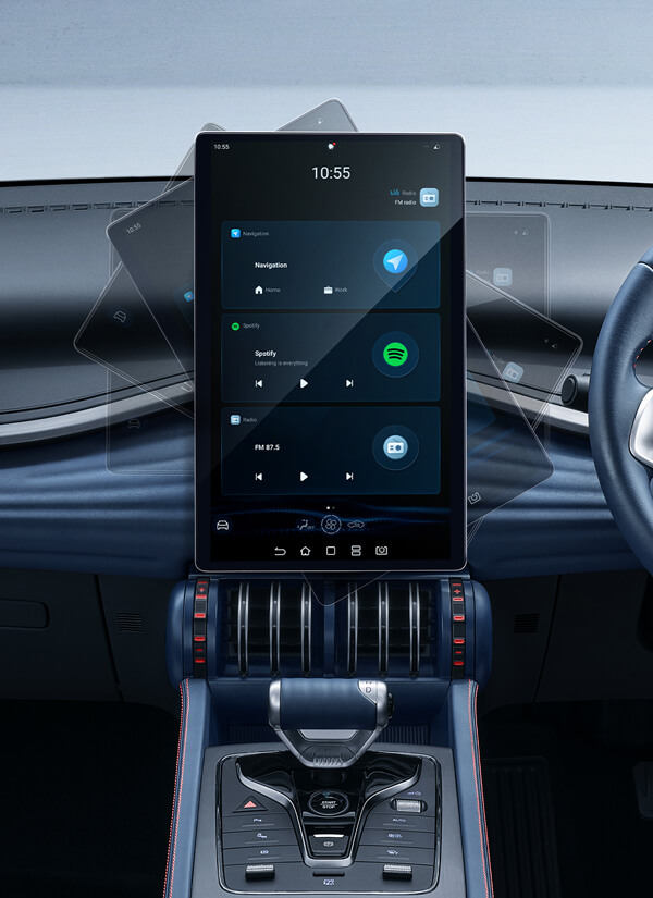 15.6" rotating display with Wireless Apple Carplay® Android Auto™
