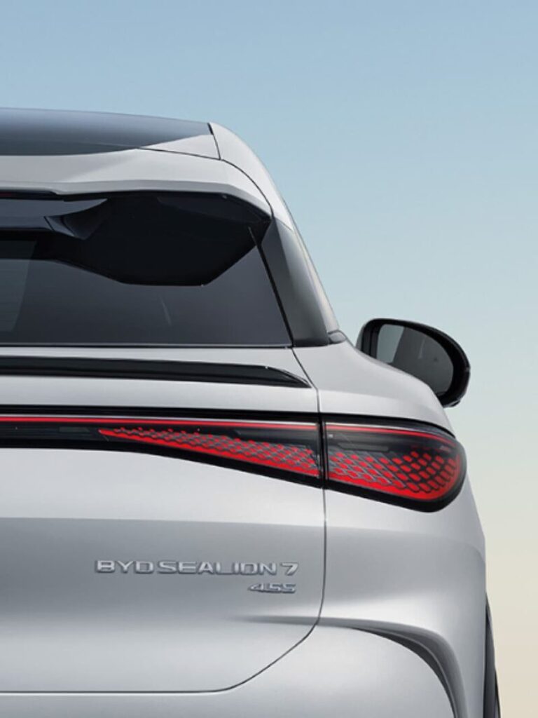 The SEALION 7’s futuristic tail lamps combine sleek linear light strips with water-drop-shaped dots, creating a sense of movement and energy. These design elements evoke the high-speed motion of water droplets, giving this electric SUV a modern aesthetic that stands out on the road