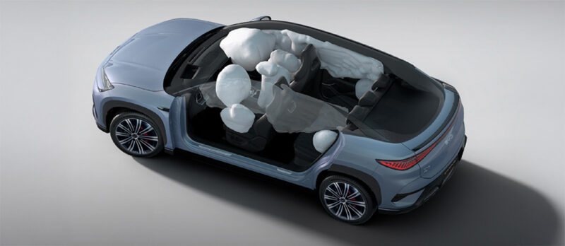 Penutup atas baterai dan lantai bodi digabungkan menjadi satu, membentuk struktur "sandwich" dari seluruh kendaraan. Sistem baterai daya adalah bagian energi dan komponen struktural mekanik, yang meningkatkan pemanfaatan ruang baterai. Integrasi yang lebih erat antara baterai blade dan bodi memungkinkan BYD SEALION 7 mencapai kekakuan torsi yang sangat baik.